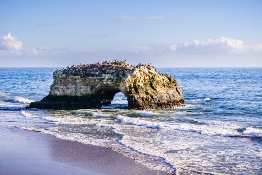 Just two miles from the Boardwalk, Natural Bridges State Beach offers a completely different vibe: the iconic natural sandstone arch that gives the beach its name, exceptional tide pools, and the Monarch Butterfly Natural Preserve, which draws thousands of monarch butterflies between October and April each year. For kids who are into nature, the combination of tide pools (sea stars, anemones, shore crabs), whale-watching opportunities from the bluffs, and the butterfly preserve makes this one of the most educational beach visits in the entire state. The preserve is wheelchair and stroller accessible via a wide boardwalk.